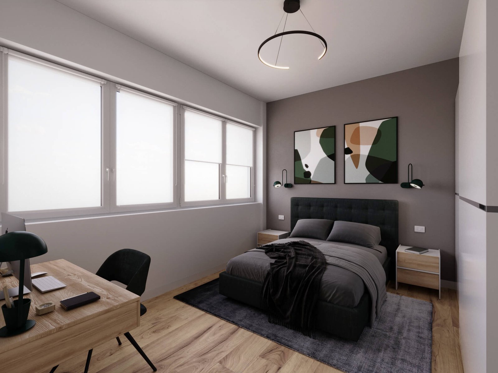 In questo progetto abbiamo realizzato una serie di visualizzazioni 3D per un quadrilocale situato a Bologna, su incarico di Rosa Property Consulting, trasformando la planimetria in ambienti realistici, chiari e immediatamente comprensibili.
